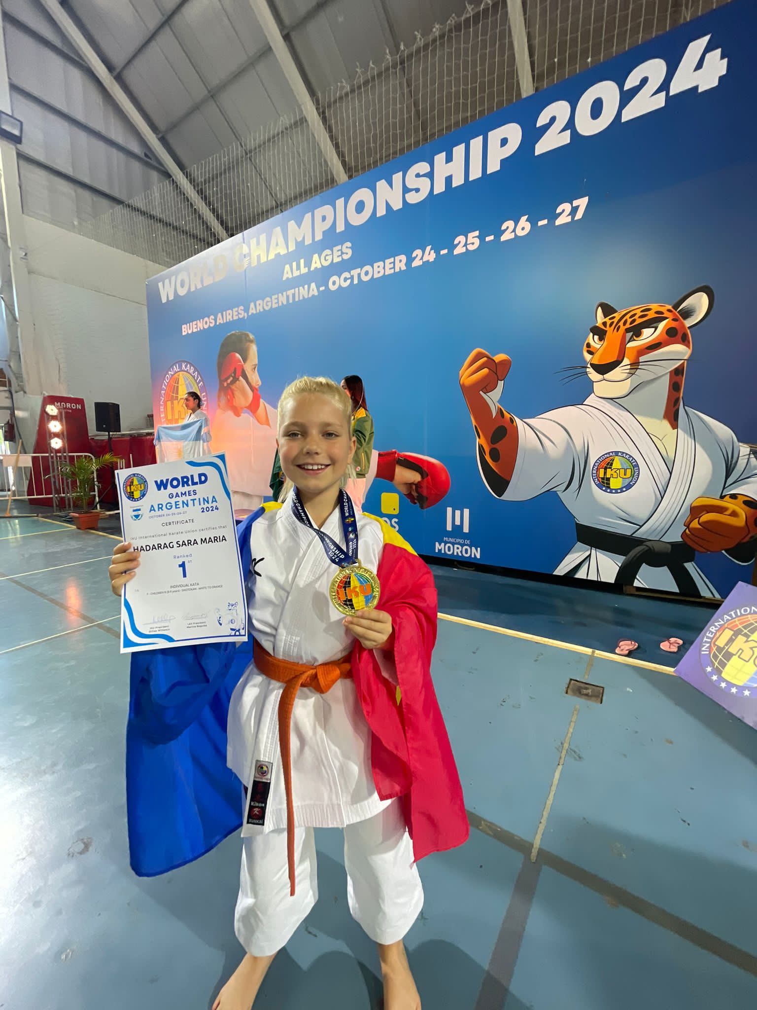 Sara Hadarag – Micuța Campioană de Aur a României la Campionatul Mondial de Karate din Argentina 2024! (FOTO)