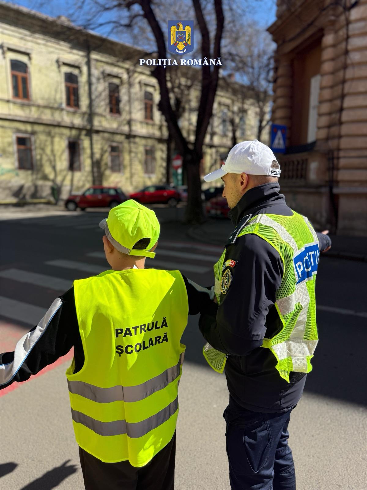 Elevii din Arad, alături de polițiști, învăță siguranța rutieră prin patrula școlară