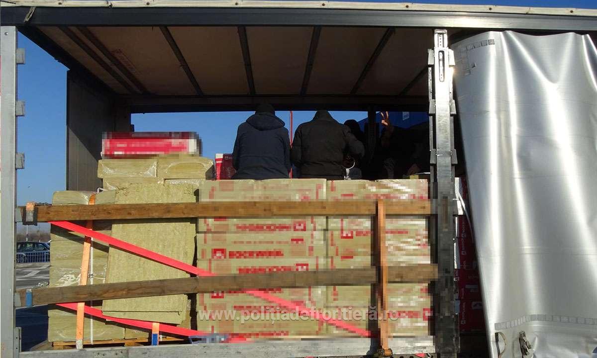 Paisprezece cetățeni străini, depistaţi ascunşi într-un automarfar care transporta vată minerală