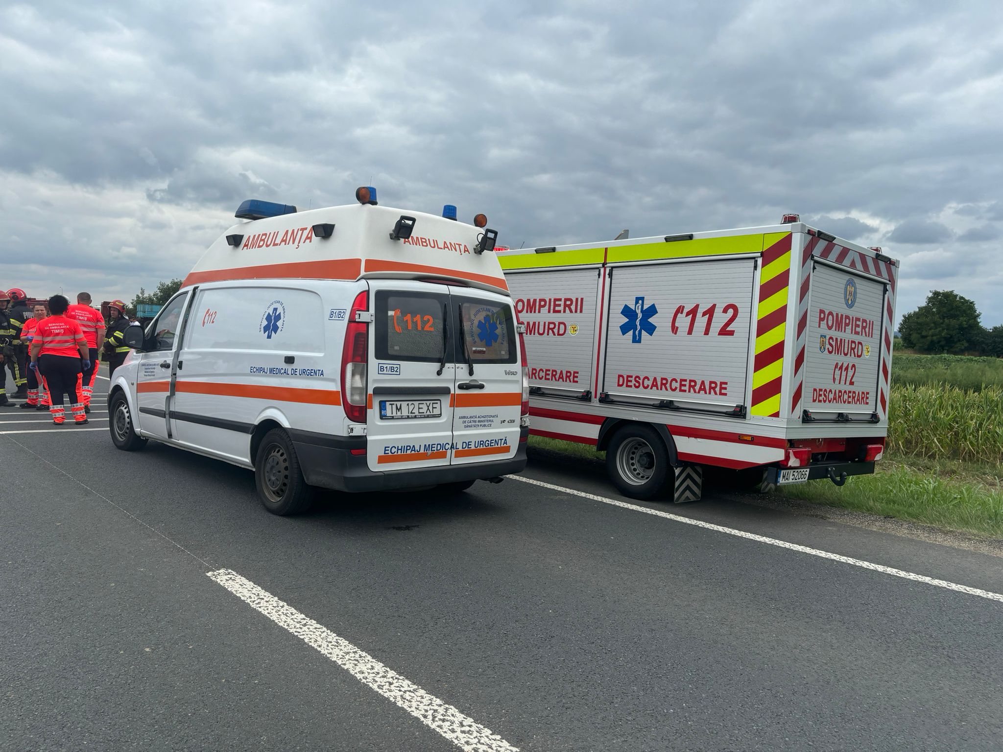 Accident grav cu trei autoturisme la Belinț: O victimă încarcerată salvată cu elicopterul SMURD (FOTO)