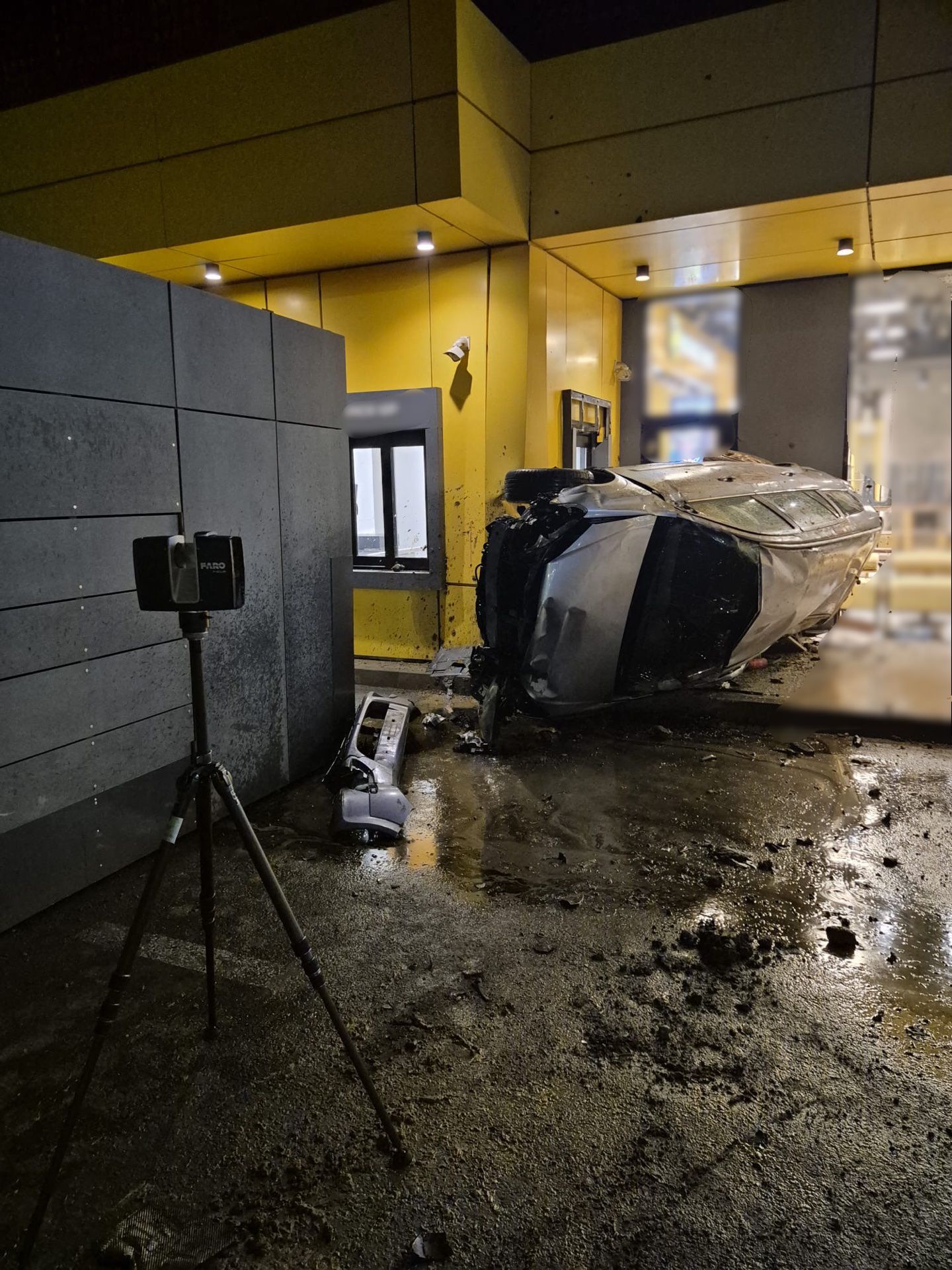 Jud. Cluj – Impact violent în Florești: Autoturism izbit de un stâlp și de peretele unui magazin. Șofer fără permis